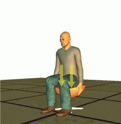 座っているときに坐骨結節にかかっている重さは、前傾すると両足にかかるようになります。