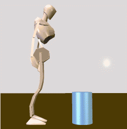 ![]() 介助者の動きを見てください。 自分の体全体の移動に伴って、適切な位置に足を移します。 両足を大きく開いて基底面を広く取る必要はありません。 足が短ければ、途中で歩けばよいのです。 そのためには、いつでも止まれるようにして動くことが大切です。 「相手の重さは相手の体で支えている」のが良いです。 ことばを変えると、つねに被介助者の重さは被介助者自身の体のマスから支持面に流れるようにしておきます。 つまり、被介助者に「歩く移動」をさせるようにします(被介助者が歩くのではなく、「立ち上がる」という移動は「跳ぶ移動」ではなく、「歩く移動」に分類されるということです)。 介助者の基本的な動きは、立ち上がるだけです。 立ち上がるときに相手の動きを邪魔しないように前後に歩きます。 介助者は「力」を入れて、被介助者を支えたり、持ち上げたりする必要はありません。 被介助者が立ち上がるときのバランスを調整するだけでよいのです。 被介助者のマスの中の重さの移動を、誘うように動きます。 「歩く移動」のために、被介助者のマスの重さは、必ず被介助者の骨にかかるようにします。 そうすれば、介助者は重さを抱え込まずに、自分の体を楽に使えます。 |